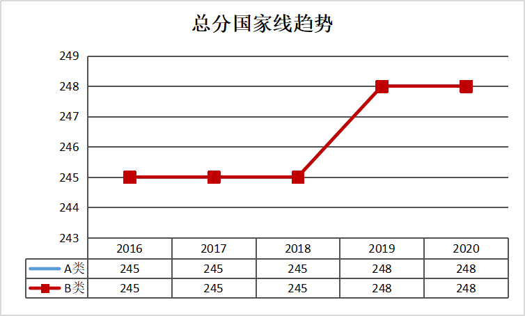 小科(满分=100) A类 B类 2020年 46 43 2019年 44 41 2018年 42 39 2017年 44 41 2016年 45 42 大科(满分>100) A类 B类 2020年 69 65 2019年 66 62 2018年 63 59 2017年 66 62 2016年 68 63 四、教育/汉语国际教育